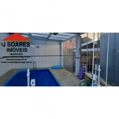 SOBRADO = 3 QUARTOS SENDO 1 SUÍTE, BANHEIRO SOCIAL, LAVABO, SALA DE ESTAR E SALA DE JANTAR, COZINHA, ESPAÇO GOURMET, LAVANDERIA, PISCINA C/ AQUECIMENTO SOLAR E TETO RETRÁTIL POR CONTROLE, TODA FECHADA COM BANHEIRO, GARAGEM P/ 4 CARROS - ÁREA CONSTRUÍDA 184 m2.