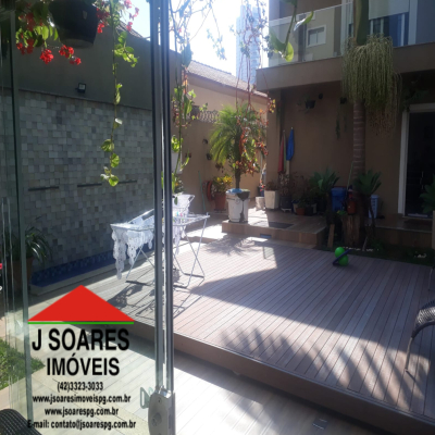EXCELENTE SOBRADO EM ALTO PADRÃO = CONTENDO = 5 QUARTOS SENDO 3 SUÍTES COM SACADA, 1 HIDROMASSAGEM, 1 CLOSET, SALA DE JANTAR, SALA DE ESTAR, COM LAREIRA, SALA DE TV, ESCRITÓRIO, COZINHA C/ ARMÁRIOS, DESPENSA,  3 LAVABOS, 4 BANHEIROS SOCIAIS, ÁREA DE SERVIÇO, AMPLO ESPAÇO GOURMET, PISCINA, GARAGEM P/ 5 CARROS.