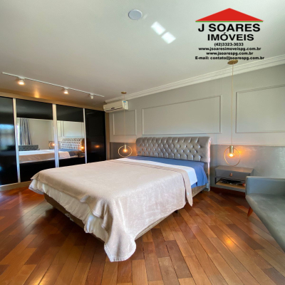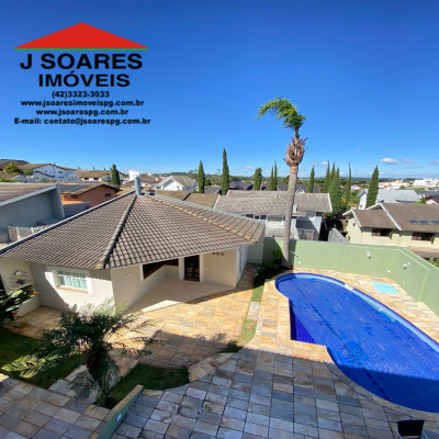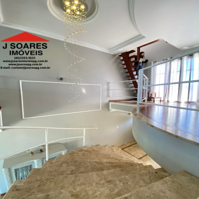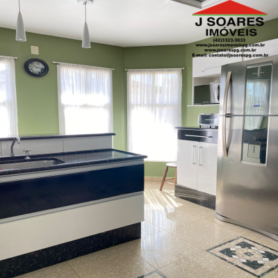 EXCELENTE RESIDÊNCIA EM ALTO PADRÃO = CONTENDO = 3 SUÍTES SENDO 1 MASTER C/ CLOSET, 2 DEMI-SUÍTES, SALA TV, ESTAR e JANTAR, BANHEIRO SOCIAL, LAVABO, ESCRITÓRIO, COZINHA C/ COPA, LAVANDERIA, EDÍCULA C/ CHURRASQUEIRA, BANHEIRO, VESTIÁRIO, PISCINA, GARAGEM FECHADA P/ 2 CARROS, DEPÓSITO, VARANDA NOS PISOS SUPERIORES E INFERIORES.